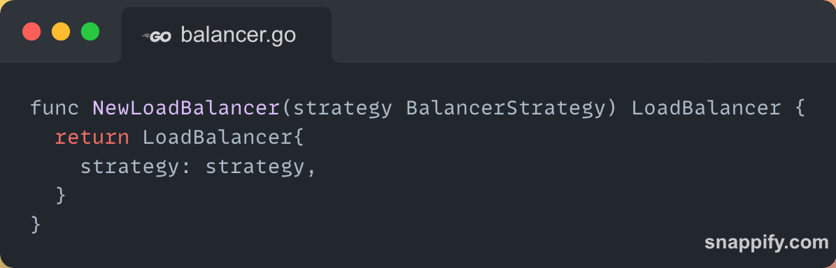We use this function to create a new instance of LoadBalancer, and we pass in the strategy we want it to follow.