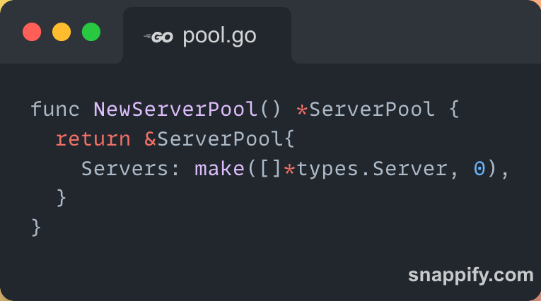 Here, Servers is a slice of pointers to types.Server. That means every server we add to this pool will be stored here.
